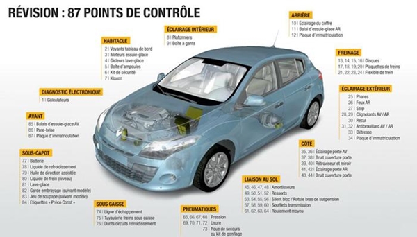- Sécurité : examen approfondi de votre véhicule et 87 points de contrôle